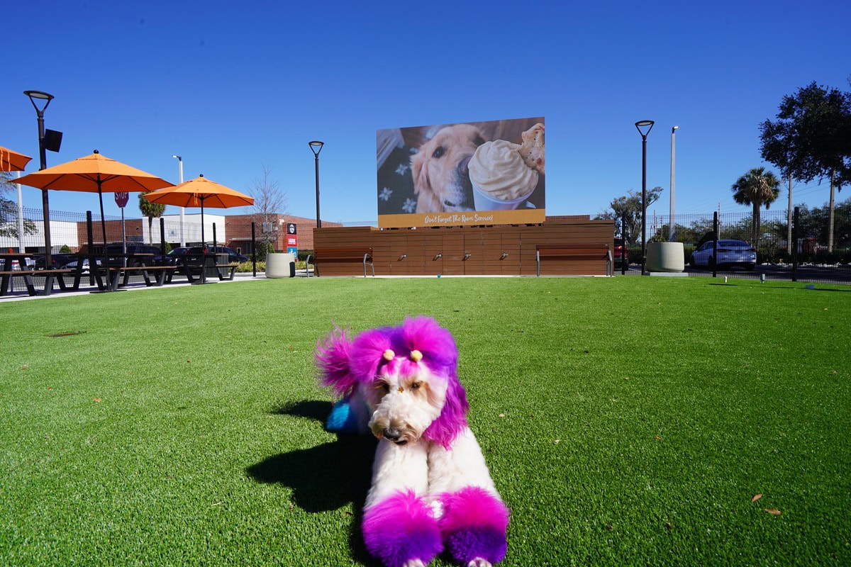 Dougie’s Dog Bar is Orlando’s hooman-friendly dog bar and social club for pets and their people, nestled in the city’s vibrant Packing District. The venue combines indoor and outdoor spaces with food, drinks and dedicated play areas (including a doggie splash zone!) for a one-of-a-kind social experience. Crunchy Tech was the AV solutions integrator tapped to deliver a complete audiovisual package that keeps the energy high for guests while standing up to the unique demands of a fur-friendly environment.